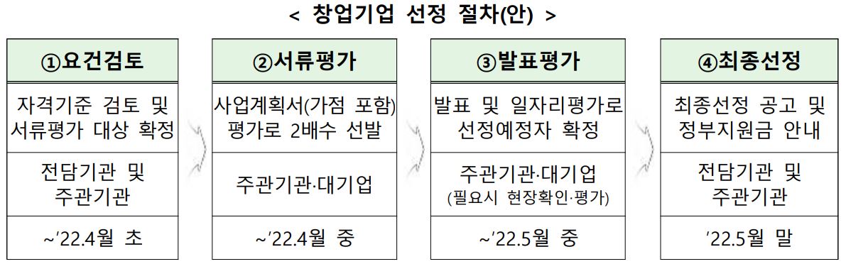 - 서류평가: 사업계획서(가점포함) 평가로 2배수 선발, 4월 중