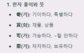 - 奇(기): 기이하다, 특별하다